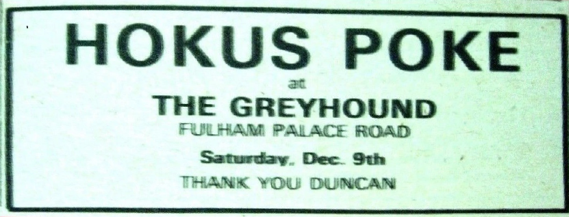 I did indeed. We called ourselves Black Sabbath. It was the keyboard player’s idea. Well, I didn’t take any notice at the time but there was another band called Black Sabbath. The keyboard player had been to Sheffield University. He got us into there and we supported The Keef Hartley Band, and we also played Keele University and the LSE. All places of learning. So, I played a few of these gigs with them under the name Black Sabbath, but it all fell apart and then came Hokus Poke.